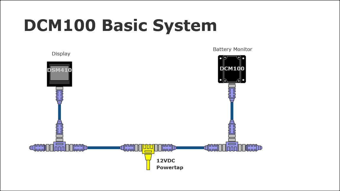 | DCM100 | Battery monitor | Monitors voltage, current, state of charge and battery temperature |