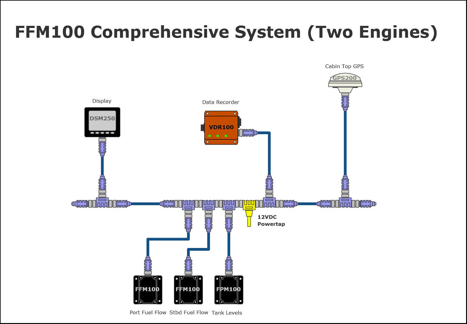 | FFM100 | Fluid Flow Monitor | Monitors fuel flow rate, supply fuel temperature, return fuel temperature, trip fuel used. |