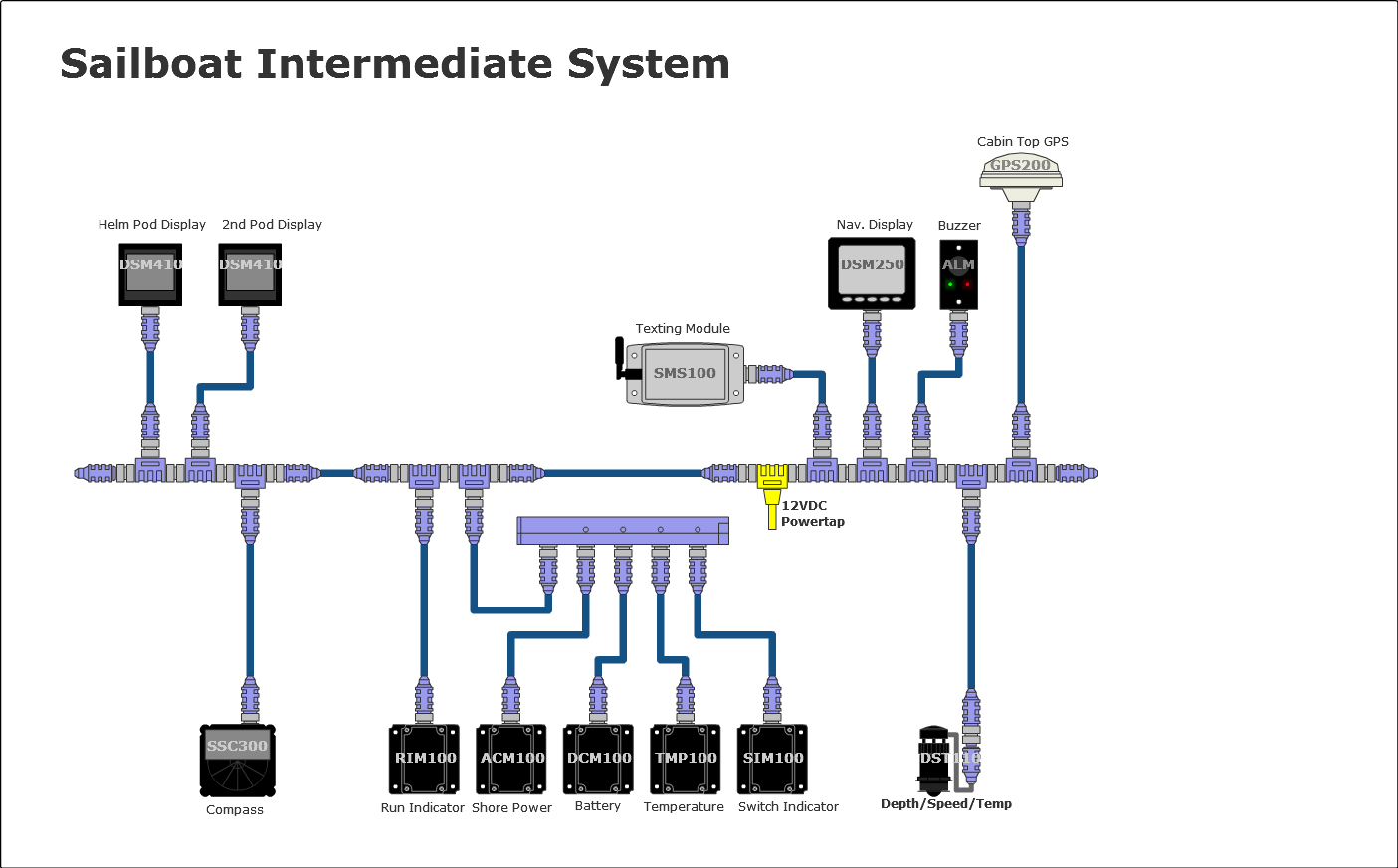 | DSM410 | Stbd Helm Pod Display | Displays data in this list, monitors the data and sounds an internal or external buzzer if there is a problem and sends a text message out via the SMS100 |